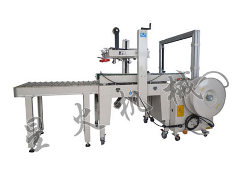 XFK-1C紙箱自動(dòng)封箱捆扎生產(chǎn)線由半自動(dòng)封箱機(jī),高臺(tái)自動(dòng)捆扎機(jī)和輸送架組成。封箱、捆扎機(jī)也可分別單獨(dú)使用。
